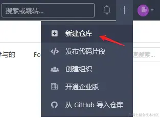 点击右上角的+号,新建仓库