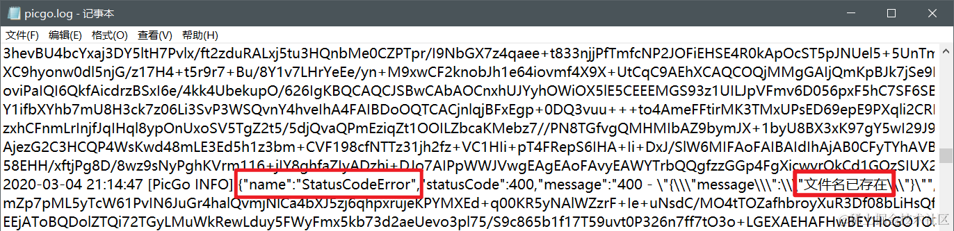 这个错误相信也有很多小伙伴遇到了,原因是文件名冲突了,如果你上传过一张image1.jpg的图片,再上传名称一样的图片就会失败,康康log文件(感谢日志!)里也写到了。