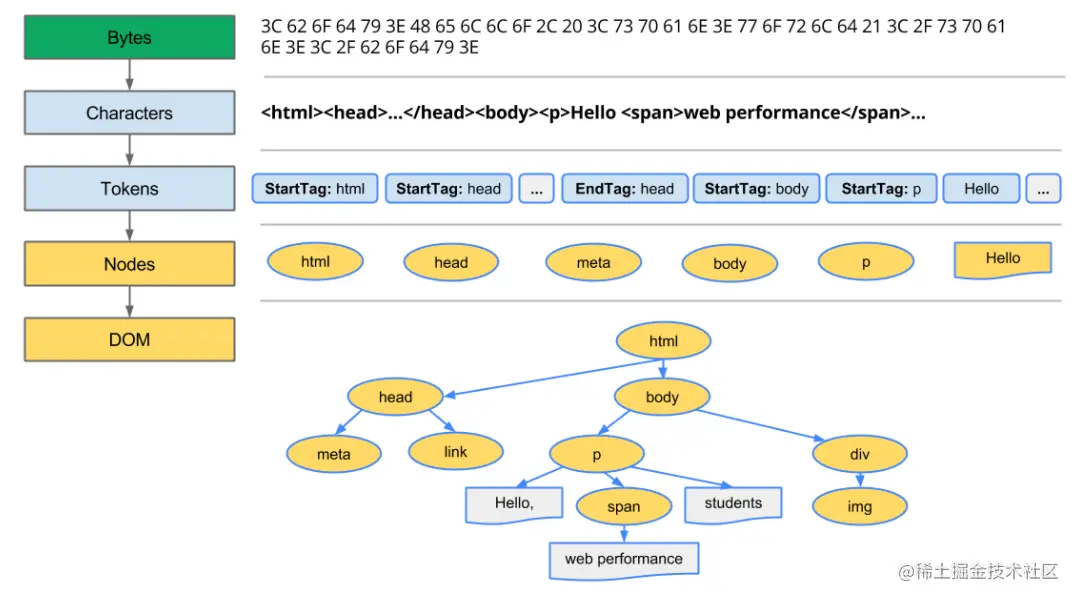 html标记定义不同标记之间的关系,创建的对象链接在一个树数据结构内,此结构也会捕获原始标记中定义的父项-子项关系:HTML对象是body对象的父项,body是paragraph对象的父项,依此类推。在解析 HTML 文件的过程中,可能中途需要网络进程去下载脚本文件以及样式文件,那么就有一个阻塞 DOM 解析以及渲染的问题,具体可参考 原来 CSS 与 JS 是这样阻塞 DOM 解析和渲染的 这篇文章,把结论贴一下:
