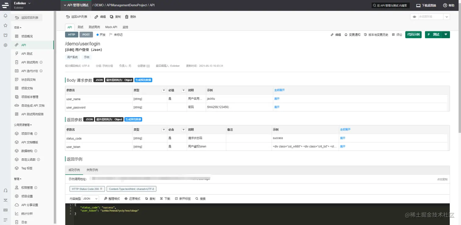 如果没有一个正式的过程来加强标准化,就不可能成功地扩展API设计和开发过程,或者遵守法规和行业标准。拥有一个API设计风格指南提供了在构建API定义和重用资产时让内部和外部团队协作所需的“护栏”。 演示工具:Eolinker——国内流行的API全生命周期开发管理工具