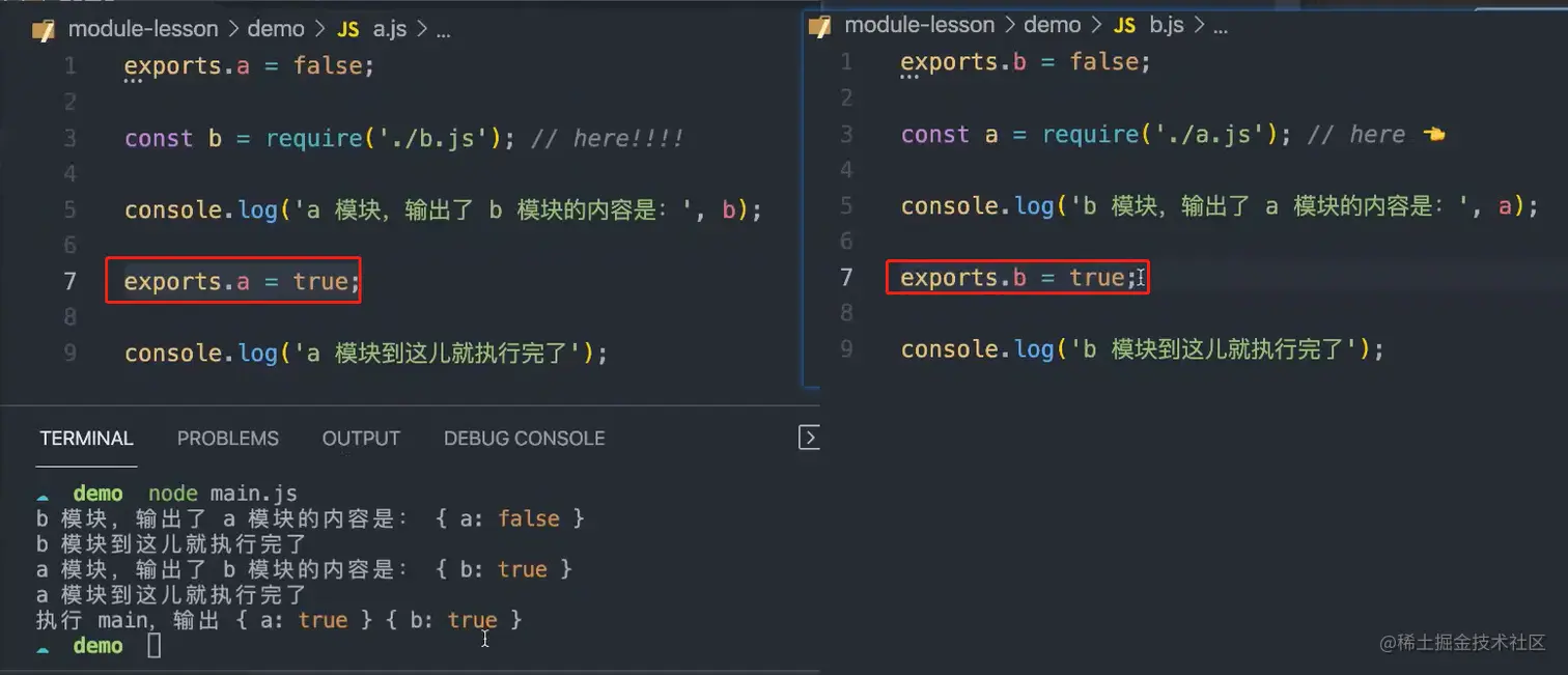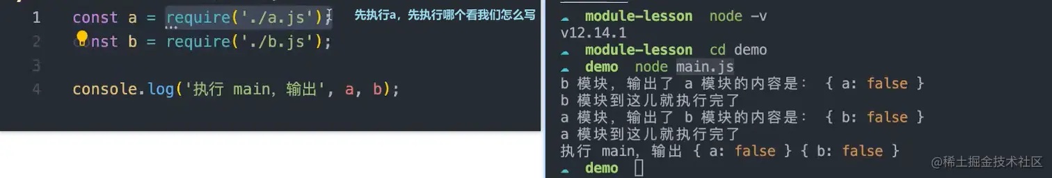 commonJS执行顺序:同步执行,会执行前面已经输出的部分