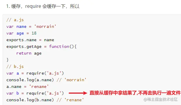 require引入的时候,require会有一个缓存,只有执行一次,然后把结果缓存起来,下次一require的时候直接从缓存里面取