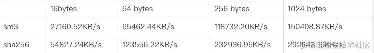 国密整个 TLS 会话流程中涉及到的几个算法,相对主流国际算法来说,大部分情况下性能均相对弱势,这里针对一些给出一些简单的性能对比表: