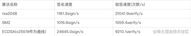 2、更快速:在通讯过程中,256 位的 SM2 算法相比于 2048 位的 RSA 算法(国密算法在设计时,RSA2048 是主流签名算法,所以这里暂不讨论ECDSA等算法),可以传输更少的数据,也就意味着更少的传输时间,并且在理论上来说,SM2 签名算法的计算速度是要快过 RSA2048 不少的。