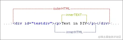 outerHTML: 与前者的区别是替换的是整个目标节点,返回元素完整的HTML代码,包括元素本身