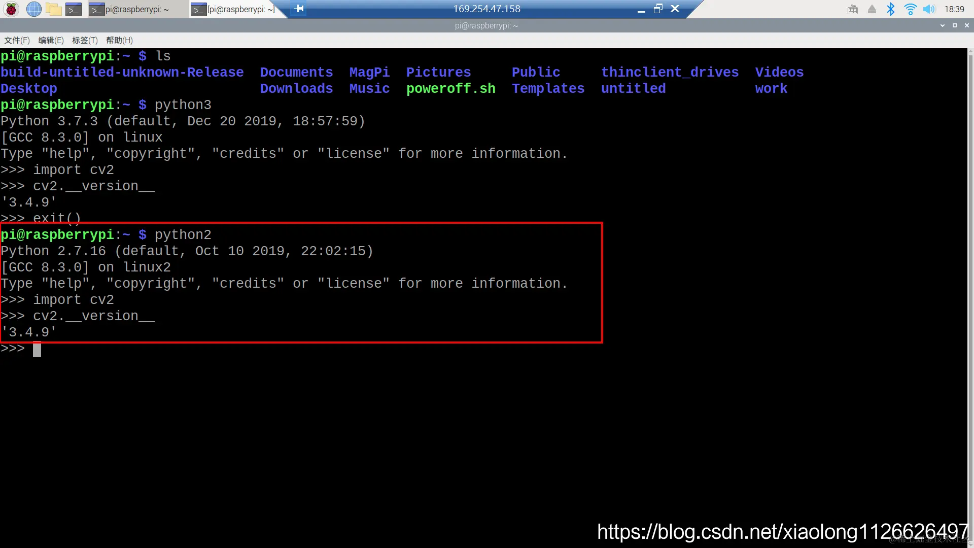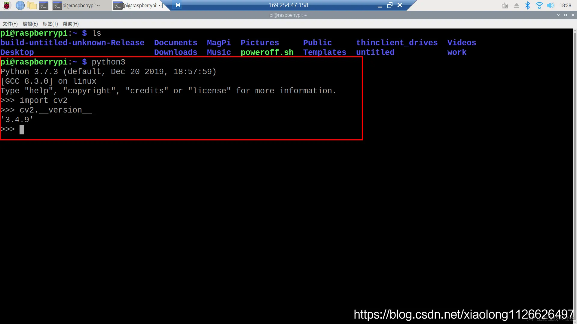 进入python3的命令行,导入cv2模块,查看OpenCV版本。