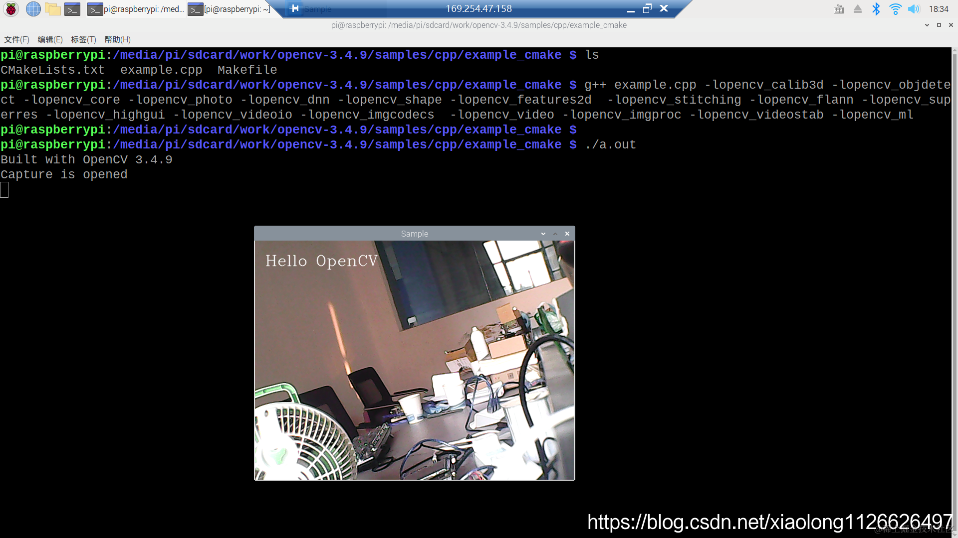 pi@raspberrypi:/media/pi/sdcard/work/opencv-3.4.9/samples/cpp/example_cmake $