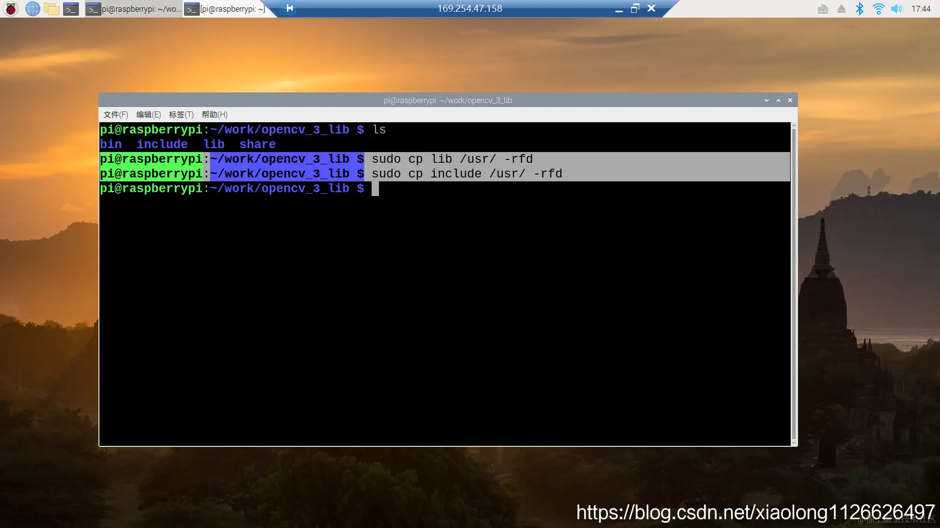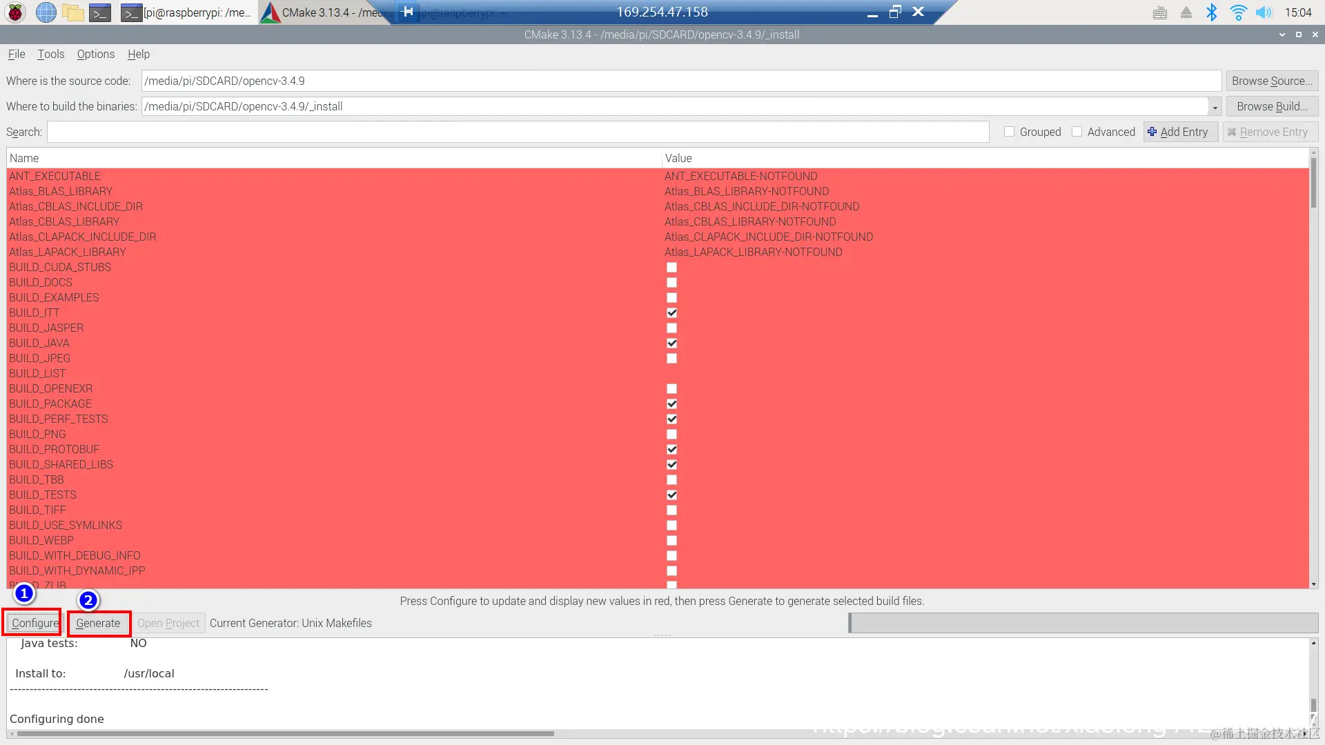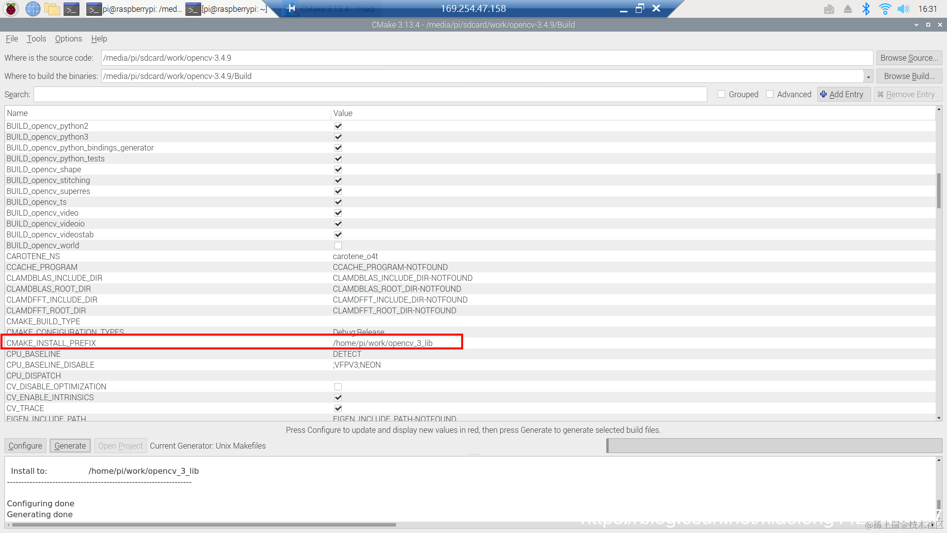 pi@raspberrypi:/media/pi/sdcard/work/opencv-3.4.9/Build $make && make install