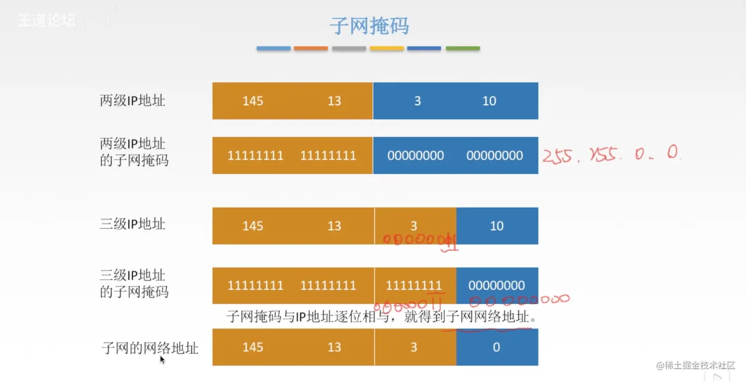 - 不同的子网掩码和IP地址相 & 得到不同网络地址,但是效果不一样
