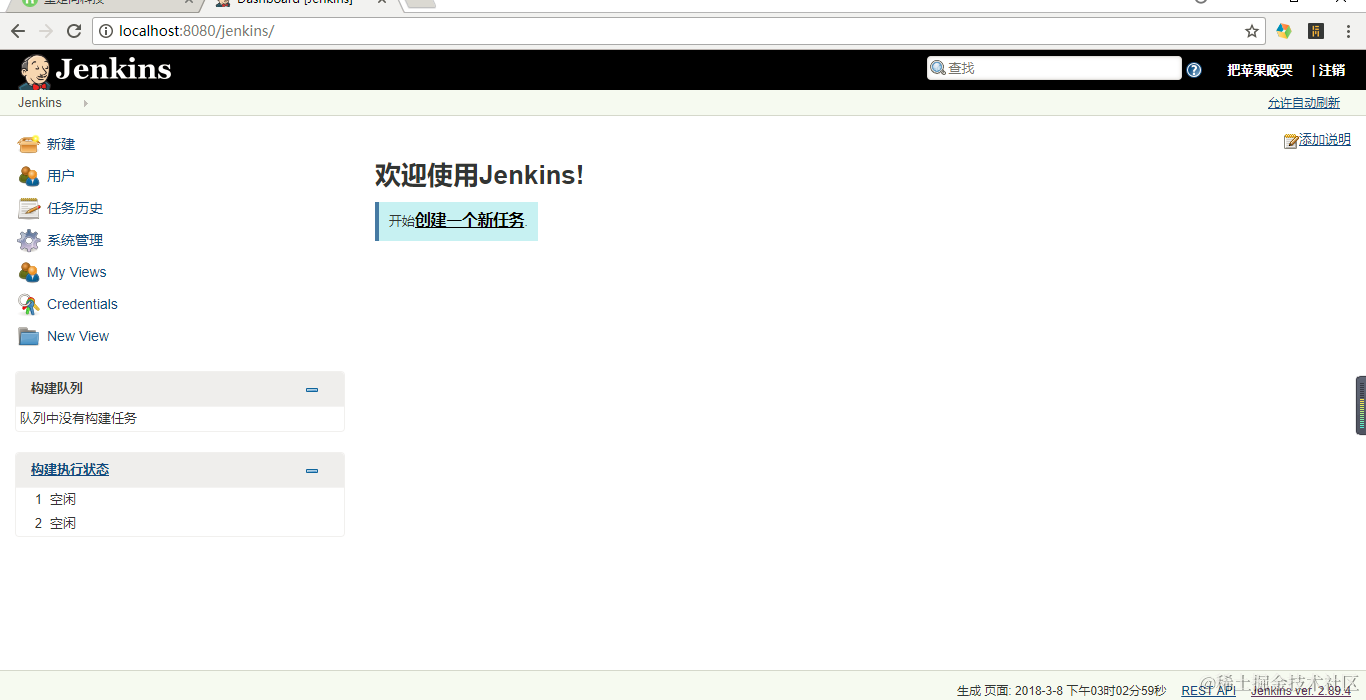 2. 访问Jenkins ,http://localhost:8080/jenkins(第一次访问可能会比较慢)