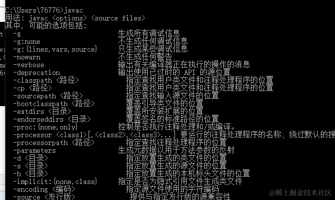 输入 javac, 会出现