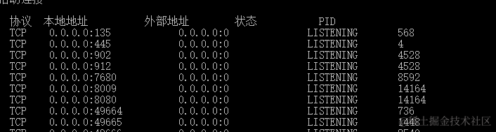 也可以在命令行下,bin目录下,输入 netstat -ano,图2