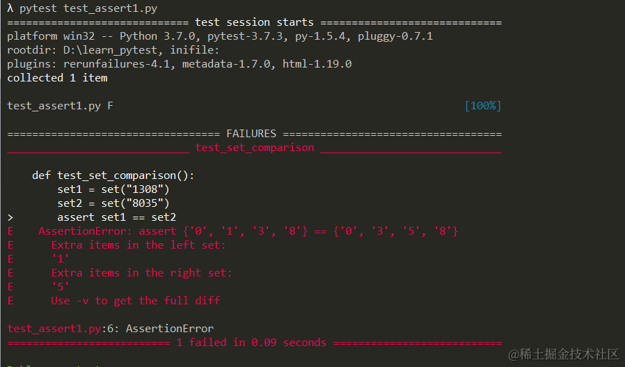 pytest 的断言报告,也很丰富,和详情,比如: