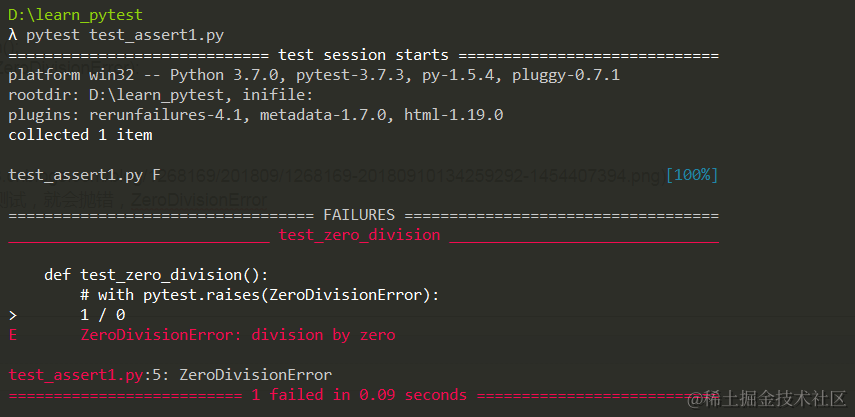 不做异常断言,运行测试,就会抛错,ZeroDivisionError