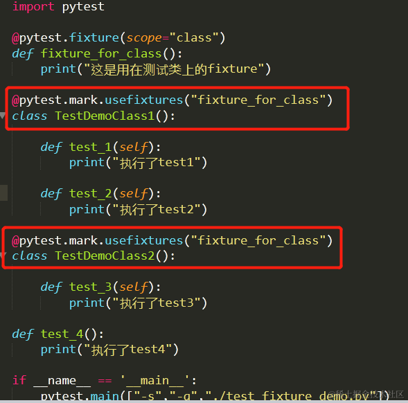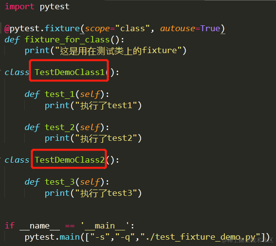 这里使用一个更加通用的方法即可,@pytest.mark.usefixtures("这里是你要用的fixture"),标记在你要使用的类。