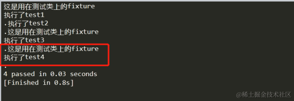 ② 同样的,当我加上scope="class"时,当前模块下的所有类,都会调用一次fixture。