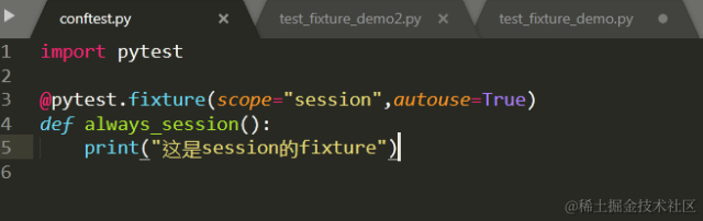 如果想在全部会话中使用,那么@pytest.fixture(scope="session")。