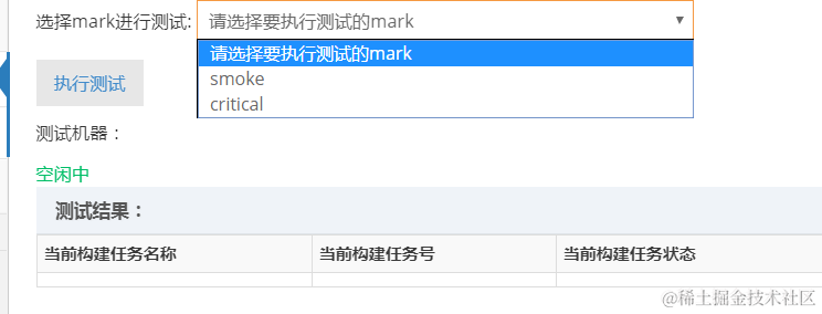 <option value="" selected="selected">请选择要执行测试的mark</option>