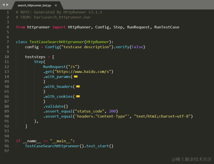 首先,我录制了一个百度搜索“httprunner”的一个请求,转换成pytest文件后如下: