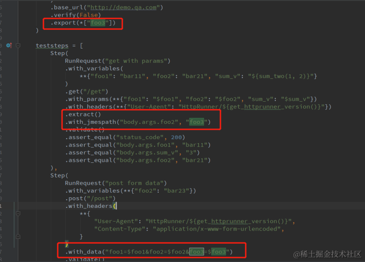 - 在第一个Step中,.extract() 提取了"body.args.foo2"给变量“foo3”。