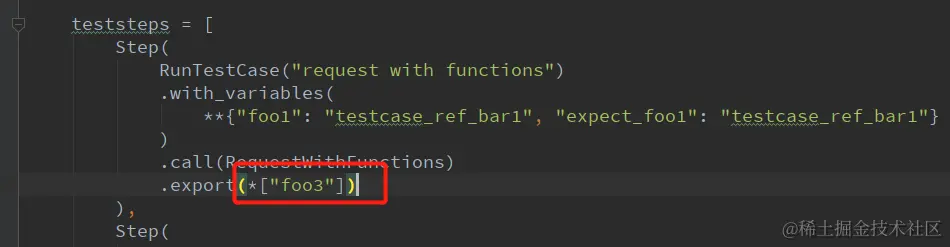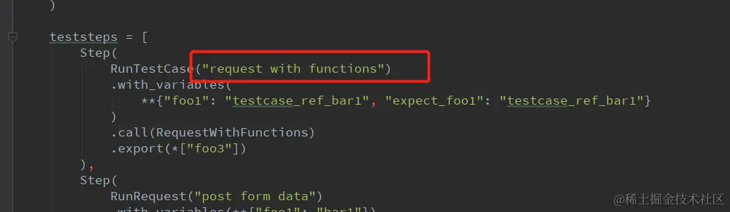 teststeps = [ Step( RunTestCase("request with functions") .with_variables( **{"foo1": "testcase_ref_bar1", "expect_foo1": "testcase_ref_bar1"} ) .call(RequestWithFunctions) .export(*["foo3"])