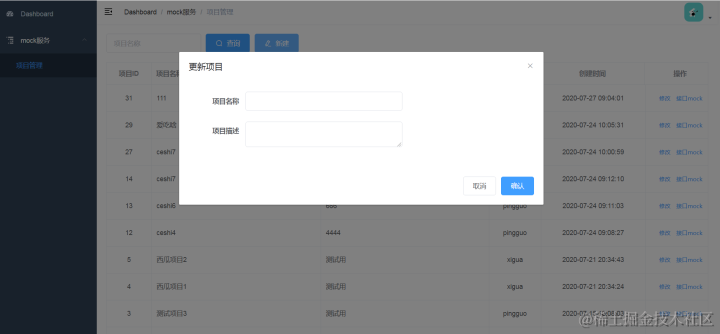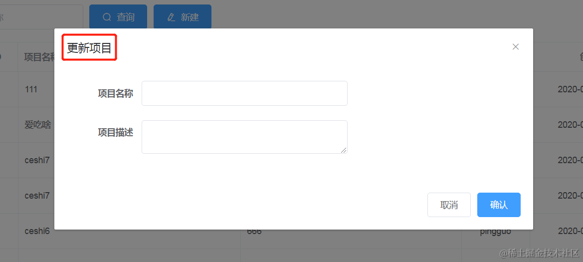 handleCreate() { //调用后端接口,创建项目