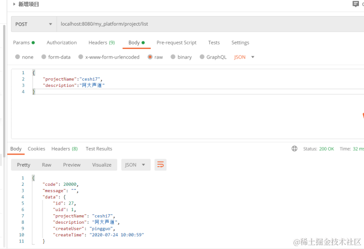 在ProjectController 里增加新的接口/list 。这里是遵循了restful 风格 ,新增的话就换成post方法。