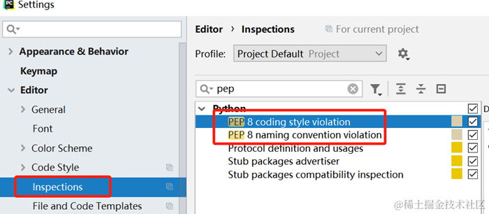 得益于现在代码编辑器的强大,在pycharm中就可以设置规范帮你检查代码。