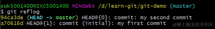 现在查看版本信息git reflog。