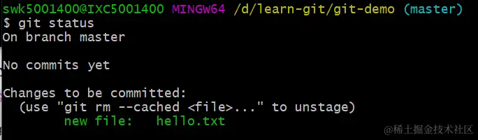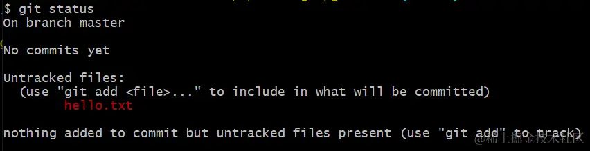 这时候新增一个文件的hello.txt,再用git status看这里就不一样了。