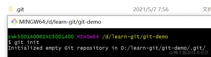 初始化成功,提示初始化了一个空的git仓库.git,这里的文件就别改动了,可以打开看看。