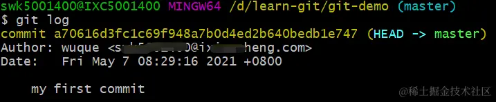 a70616d是版本号。(HEAD -> master代表指针指向这个第一个版本。