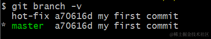 创建完成后,再次查看分支,就可以看到新建的分支hot-fix。