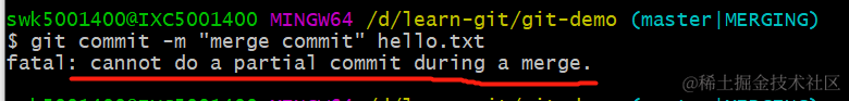 git此时还是不知道用哪个分支的hello.txt,所以提交的时候不要带文件名了。