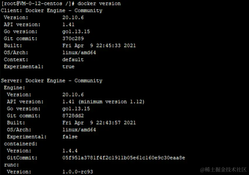 启动好后,查看docker版本信息,出现如图就表示启动成功了。