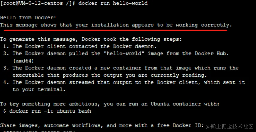 看到这句话就说明docker可以正常工作了。