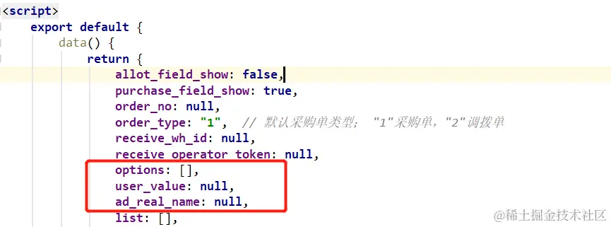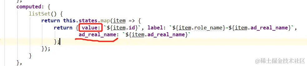 这个options是个列表,里面的元素是一个个对象{},对象里就是key-value。之前只放了{value:"", label: ""},现在我要把ad_real_name也放进去,变成
