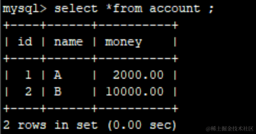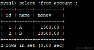 执行后,数据变更。A加了500,B少了500。