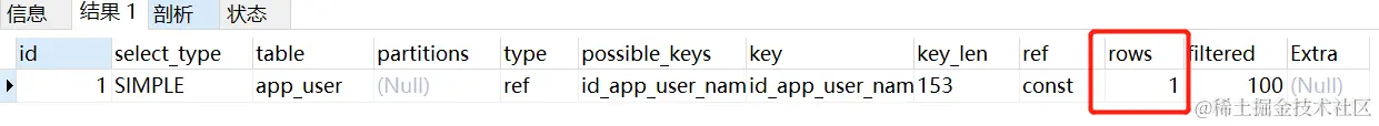 EXPLAIN SELECT * FROM `app_user` WHERE `name`='用户9999'