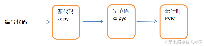 上面的一行代码虽然简单,但是python运行它还是经过了两步操作: