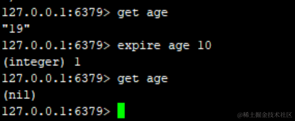 我设置age 10s后过期,等10s后再次get就拿不到值了。