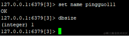 这时,给数据库里set一个值,再次查看数据库大小,就变化了。