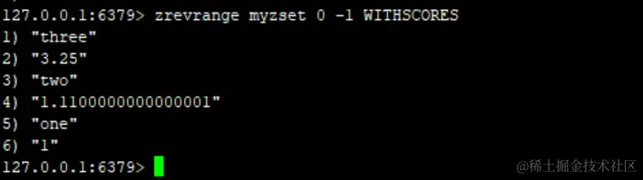 zadd myzset 1 one 1.11 two 3.25 three