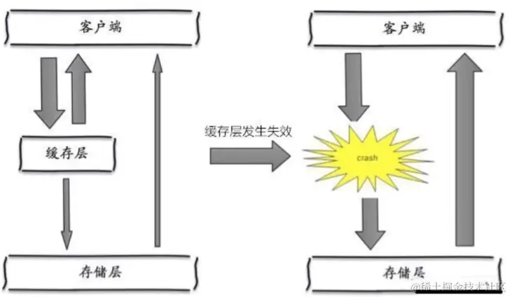 是指在某一个时间段,缓存集中过期失效,或者redis宕机了。