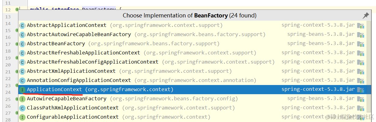 如果你使用 idea 编辑器,可以 Ctrl+左击 BeanFactory ,然后点击 BeanFactory 前面的 ↓ 箭头看到实现的父接口。