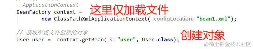 通过 XML 文件,进行对象的配置。比如我在文件里配置了一个 user 对象。