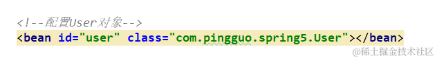因为,这时候就算 User 类的路径变了,不是这个 "com.pingguo.spring5.User",那么只需要改XML文件即可,不需要改其他的代码。
