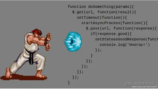 前面我提到过回调函数,这里我详细讲解一下异步编程。在 ES6 的 promise 出来之前,我们只能用回调函数来解决异步执行问题。这样简单直观,但一个比较重大的问题是其可读性,也就是回调地狱,同学们可以看一下下面图片的回调地狱的例子,是不是非常的难以阅读。
