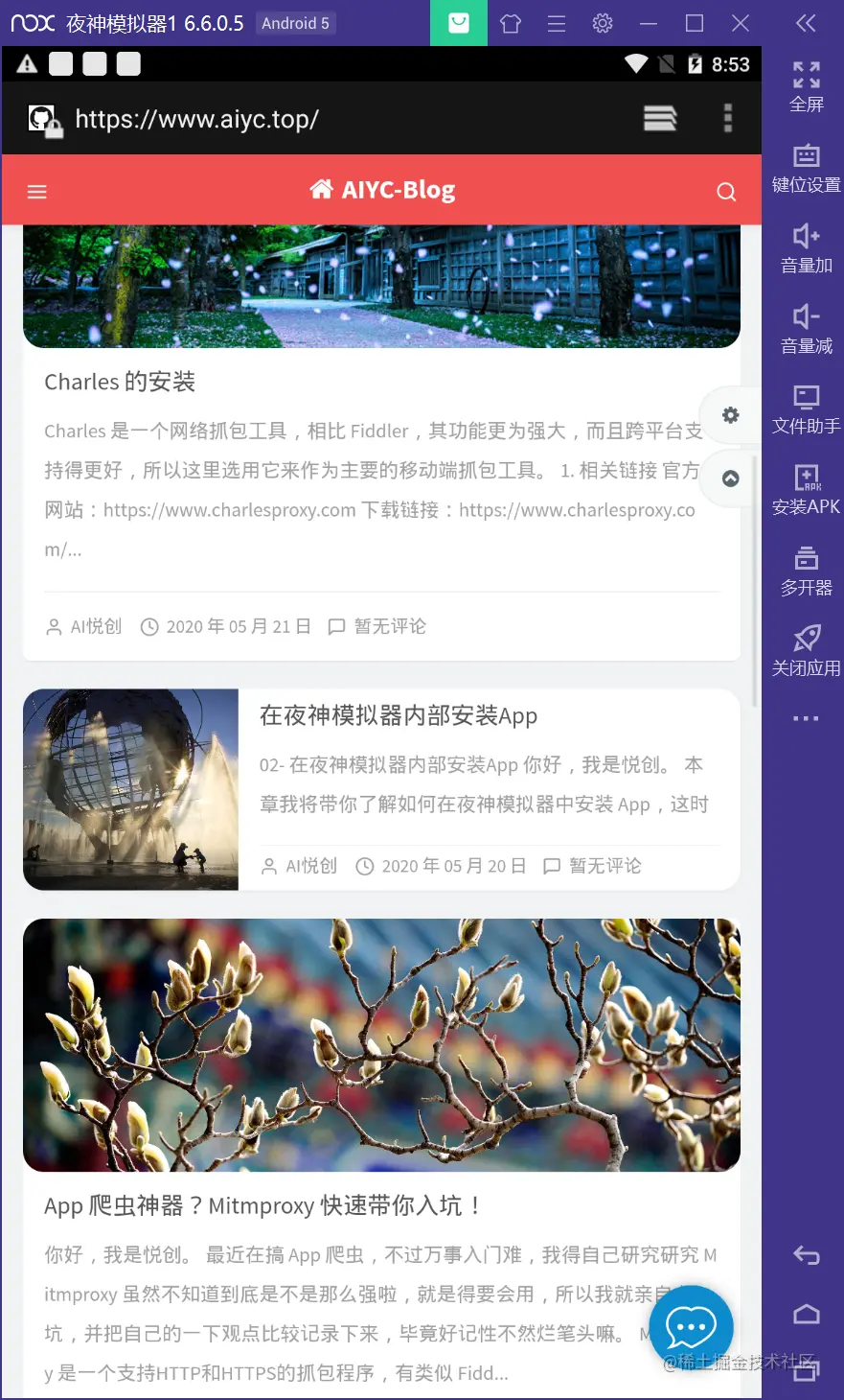 在夜神模拟器内部安装App:www.aiyc.top/archives/50…