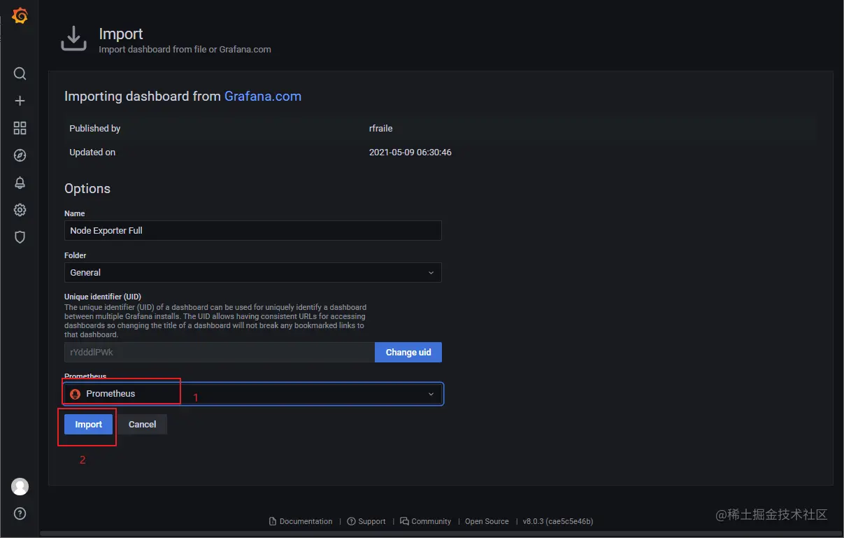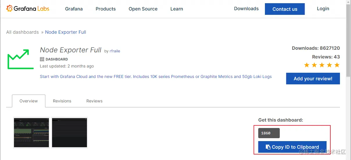 Node Exporter Full这个仪表盘,记住它的ID,访问地址:grafana.com/grafana/das…